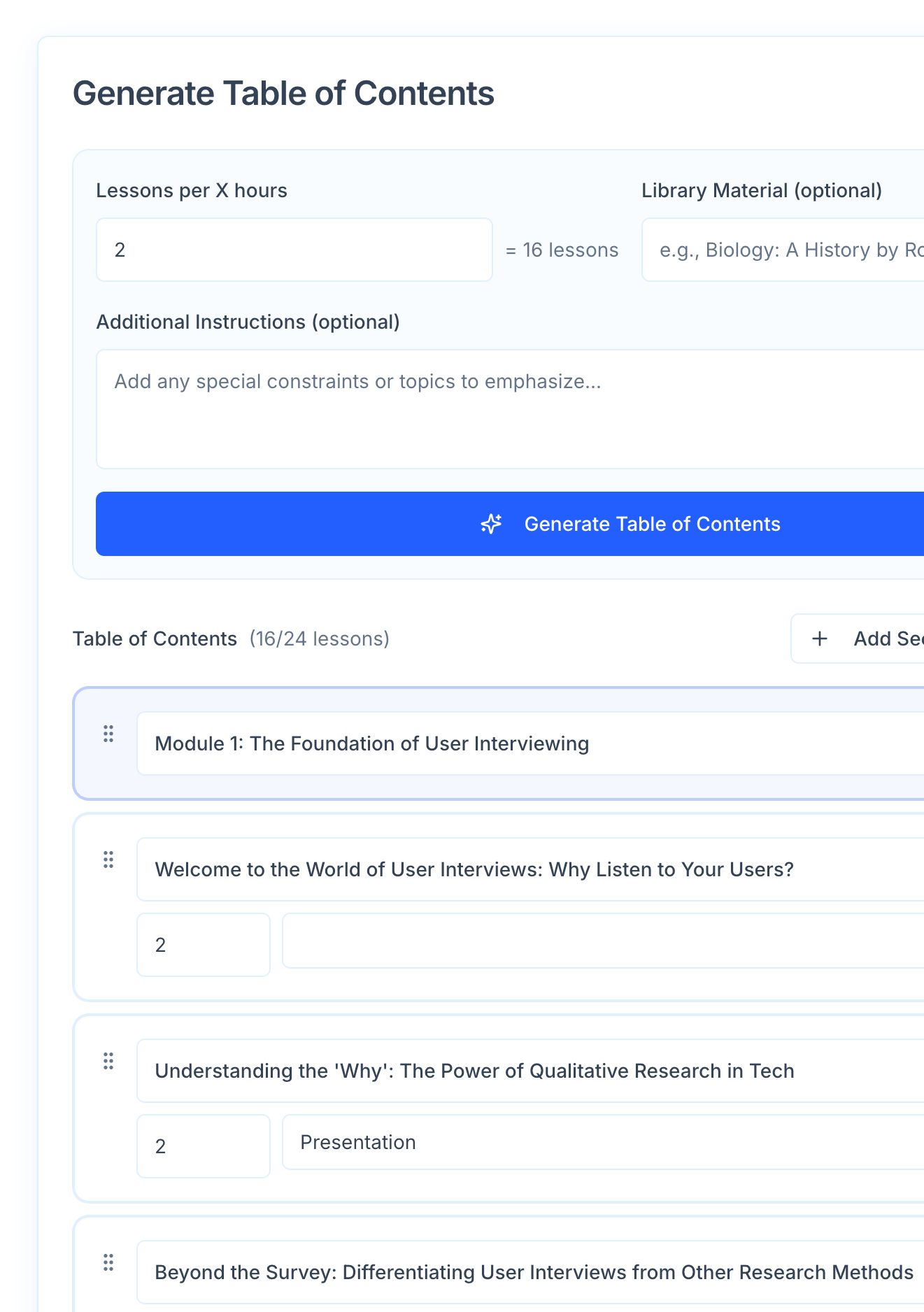 Create comprehensive courses with AI assistance. Generate lesson content, structure learning paths, and customize educational materials tailored to your students' needs.